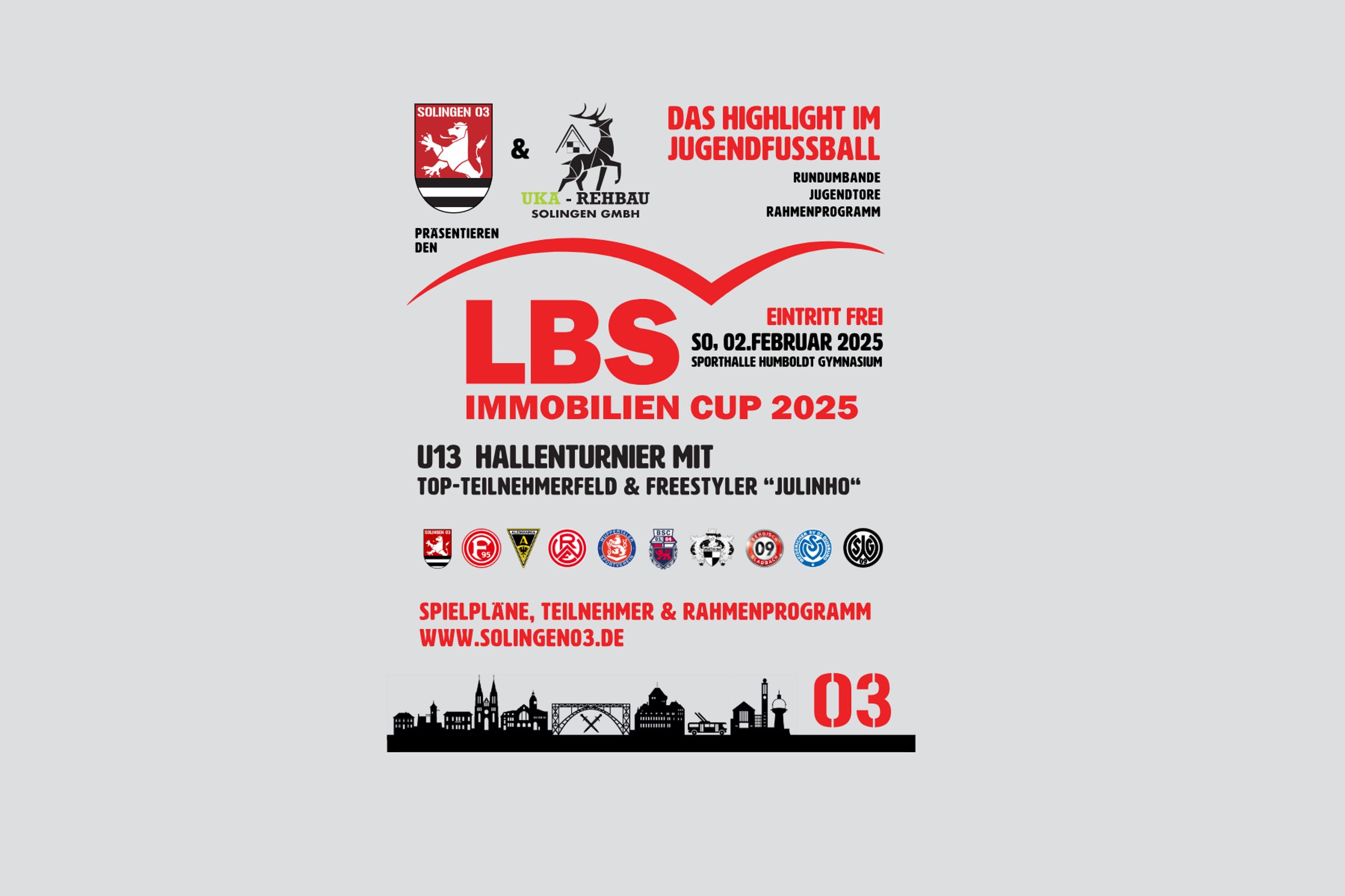 Ermöglicht wird der LBS Immobilien Cup 2025 durch die Unterstützung der UKA Rehbau Solingen GmbH, vertreten durch Kerem Keskin, sowie der LBS Immobilien Solingen, die in diesem Jahr als Hauptsponsor und Namensgeber auftreten.